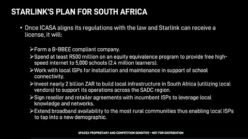 Starlink has, so far, been denied a licence because it does not have a 30% empowerment stake, which is a requirement by ICASA.