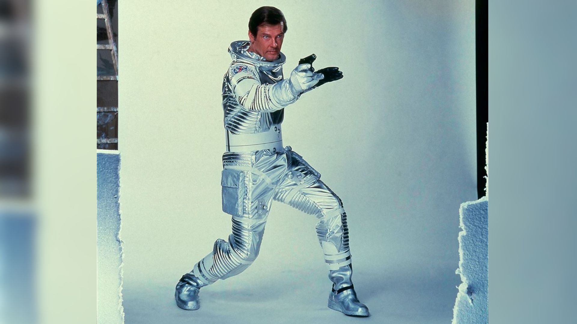James Bond goes to space! In Moonraker, Roger Moore sports a silver, reflective suit with a Union Jack and a name tag, built by Jacques Fonteray. It’s pure campy sci-fi, but its bold reflectivity, slick surface, and clean color blocking make it feel futuristic in a retro way. It stands out because it doesn’t try to hide. It leans into shine and style.