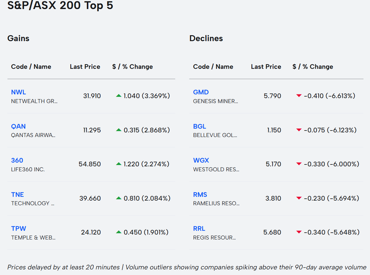 • Netwealth Group +5.1%
