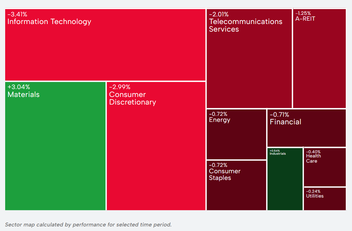 Nine of 11 sectors are down. Tech and consumer discretionary are the biggest drags on the index.