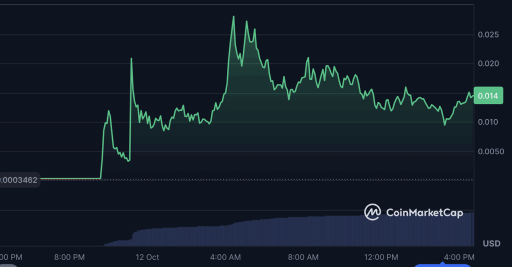 Meta Financial AI has turned heads with a 4,200% surge in the last day, trading near $0.0146. The project’s rapid rise seems tied to growing interest in AI-focused crypto assets. With over $44 million in daily trading activity, MEFAI’s market cap has reached roughly $9 million, underscoring just how quickly microcaps can heat up in a speculative environment.