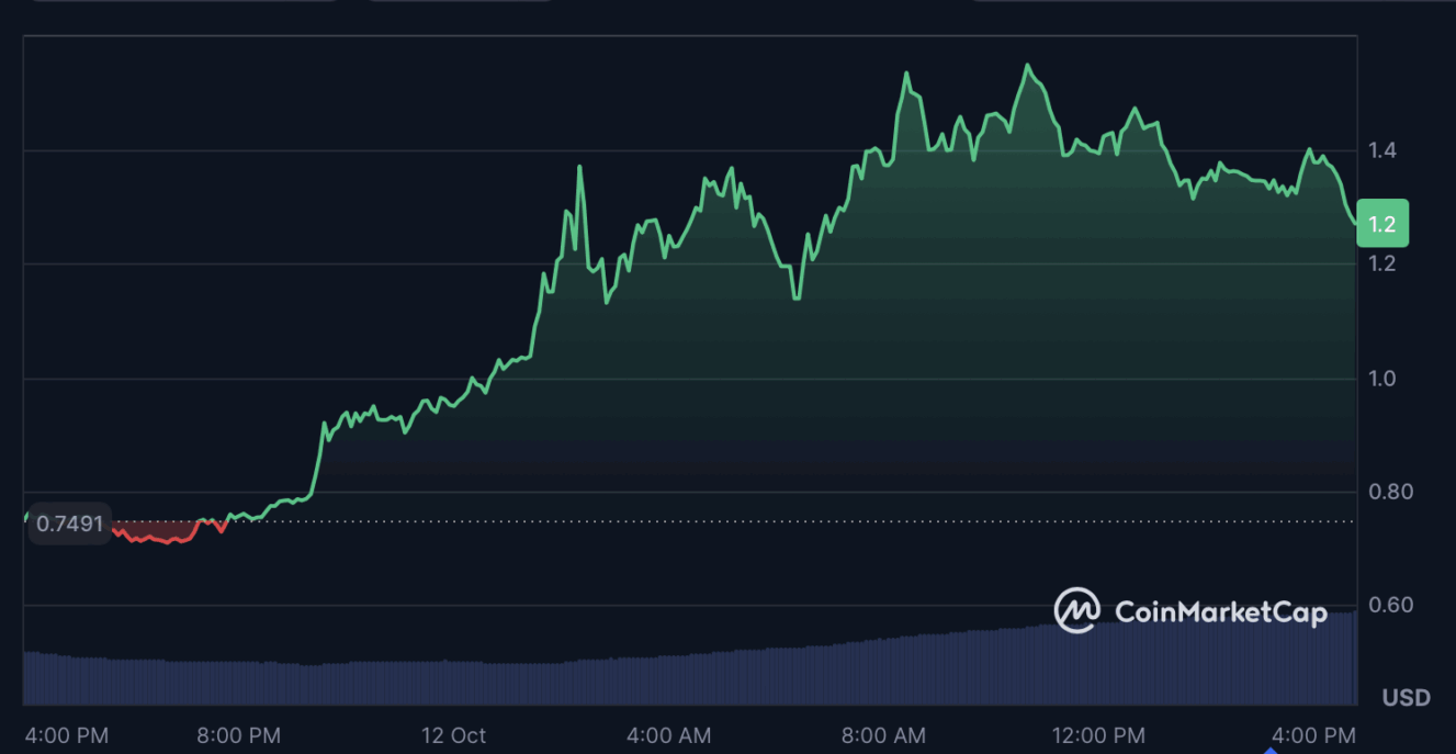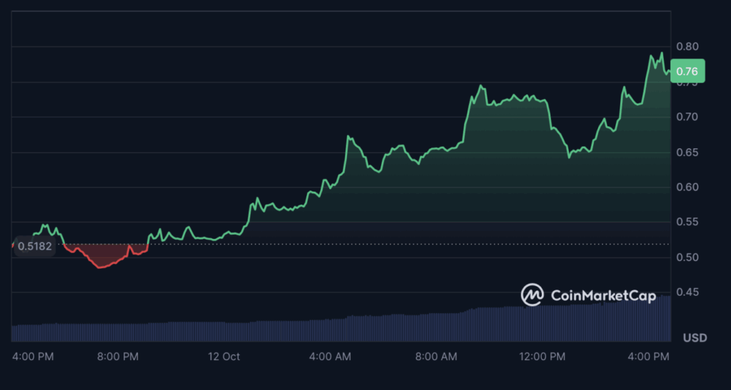 Rounding out the top five is OriginTrail, a veteran in the decentralized data space. TRAC climbed more than 54%, trading at approximately $0.78. With a market cap of $391 million, it’s the most established project among today’s top performers – possibly benefiting from investors seeking safer exposure within the altcoin rally.