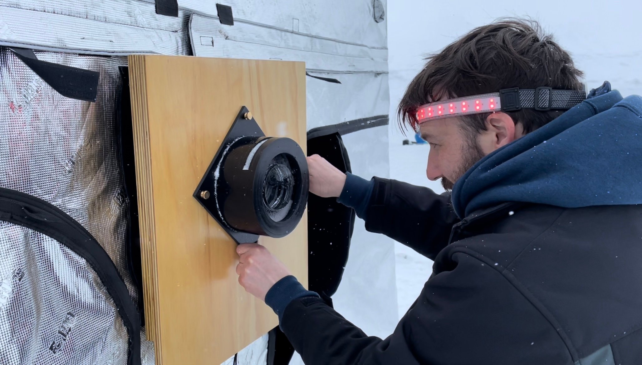 Duke built a large tent that acts as a camera obscura which the ice lens is attached to.