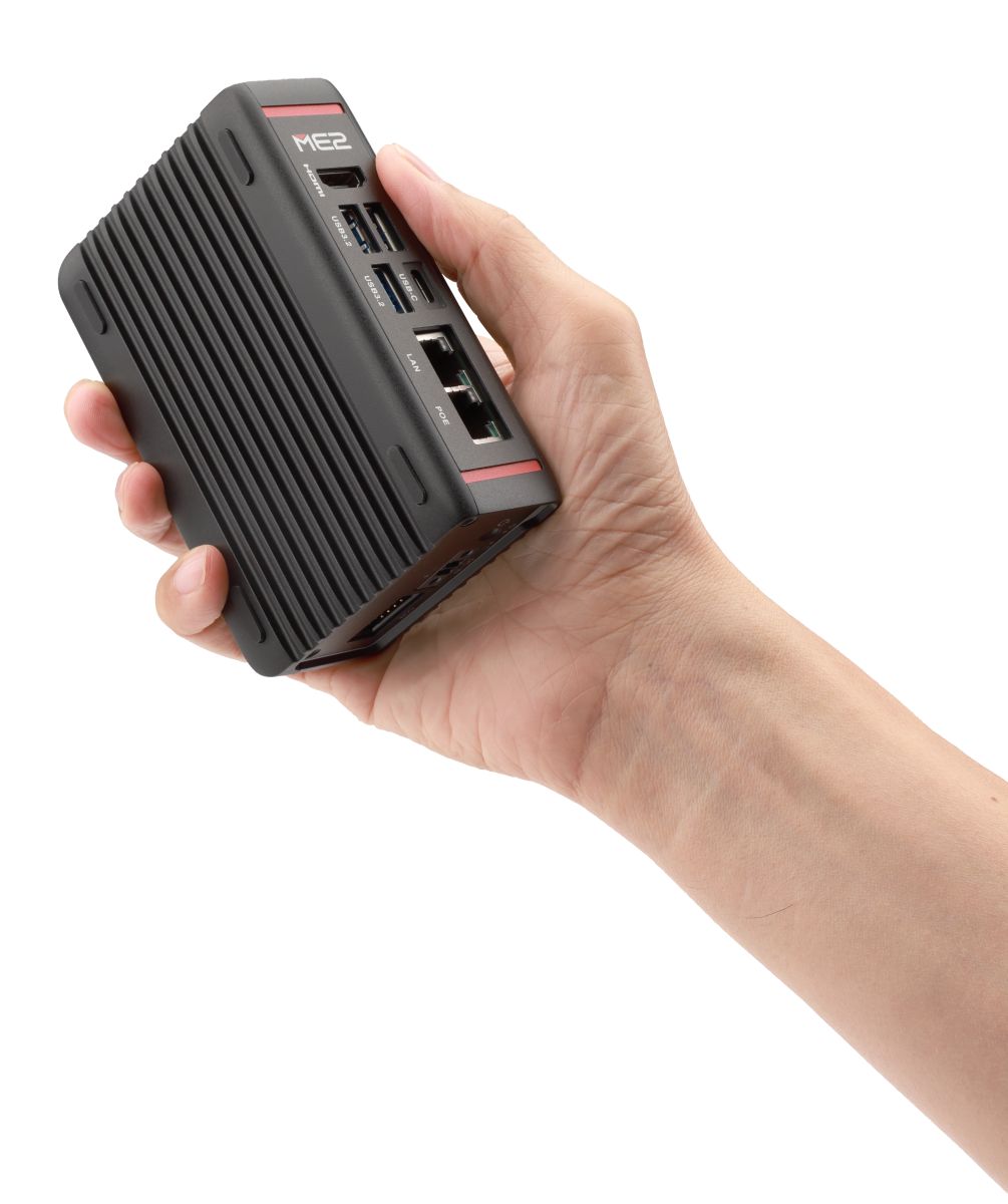 Designed to fit into tight enclosures and operate safely and reliably, the ME2 provides flexible PoE for dual LANs and versatile I/O design (3x USB type A, 1x USB type C, 1x HDMI, 1x RS232/422/485) while maintaining low power consumption and supporting an operating temperature of -25°C ~ 55°C, all requirements of Edge deployments. In particular, it is perfectly tailored for most control gateway applications. This runs the gamut from intelligent surveillance, machine vision, quality inspection, and scanning stations (logistics, inventory management, automated product scanning etc.) in a smart factory.