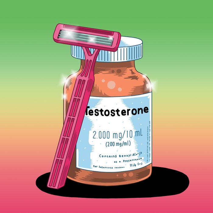 Delivering testosterone to women at higher dosages is understudied, but many researchers and physicians I spoke to also stressed “masculinizing” physical side effects like scalp-hair loss, acne, a deepened voice, and an enlarged clitoris. “I’ve had patients who come in with full beards,” says Dunsmoor-Su. A few times, she has correctly guessed that a patient has been using testosterone pellets after noticing their larger-than-usual clitoris during a gynecological exam. Many of her patients shrug off the side effects, assuming that they can always choose to stop the therapy and everything will go back to normal. But these side effects are irreversible — we know this, Dunsmoor-Su says, from trans medicine: “You give them testosterone at a male level. They transition. They develop male features. If they lose their insurance coverage and lose their testosterone for some period of time, those features don’t go back.”