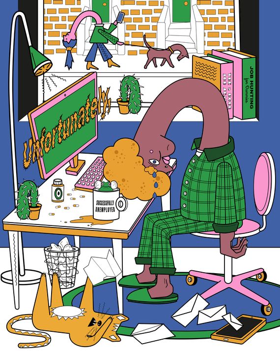 When Anurima, 27, was let go from a Queens nonprofit this spring, she noted that her HR department timed the termination just days before her health insurance would renew despite knowing she had a surgery scheduled. Compared to many other people I spoke to, Anurima is emotionally steady about her job search thus far. “Honestly, I haven’t spent a lot of time being upset,” she says. “The worst part was the insurance. But unemployment benefits and gig work have given me the ability to stay here and keep doing the things I want.”