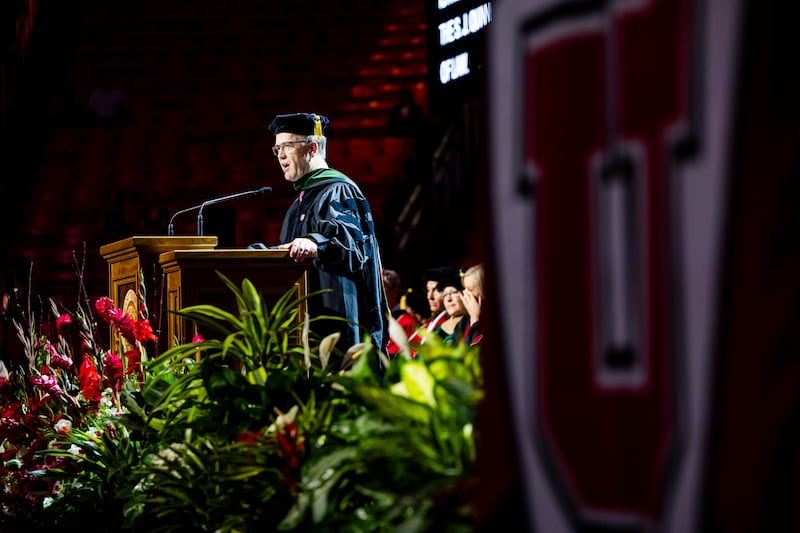Bob S. Carter, CEO of University of Utah Health and executive vice president for health sciences, recognizes faculty award recipients during commencement at the University of Utah in Salt Lake City on Thursday, May 1, 2025. | Tess Crowley, Deseret News