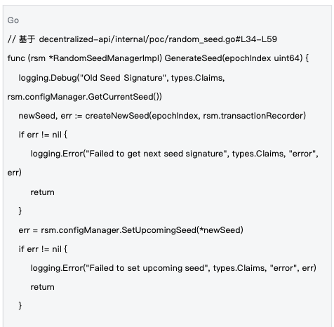 Management mechanism : Seeds are managed at the epoch level. A new seed is generated at the beginning of each epoch and synchronized to the entire network through blockchain transactions to ensure that all nodes use the same randomness base.
