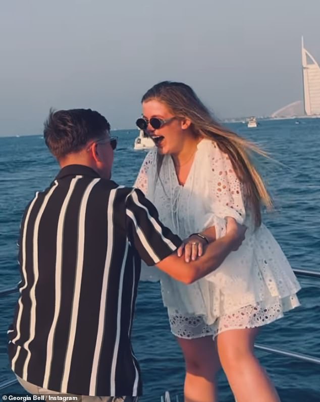 Georgia shared a video of the sweet moment the pair got engaged, where they were seen balancing on a rocky boat in Dubai with the Burj Al Arab in the background