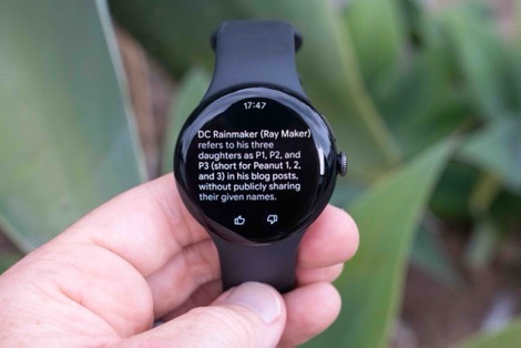 However, what is fun is playing around with Gemini, which is Google’s AI assistant. The company has touted the increased integration with other aspects of your watch, including your calendar and more. Plus, of course, search. And there are many things it can answer that are impressive. Some of it is just silly stuff (here, asking it what I said in my initial preview post, not this review):