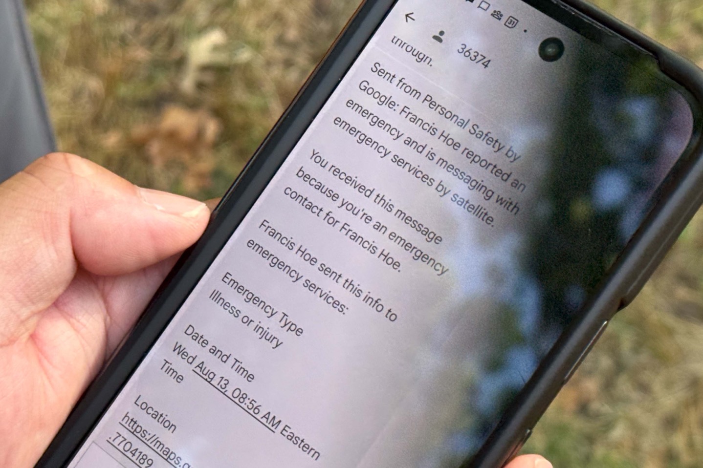 And then a moment later, an automatic confirmation from the emergency response center came back.