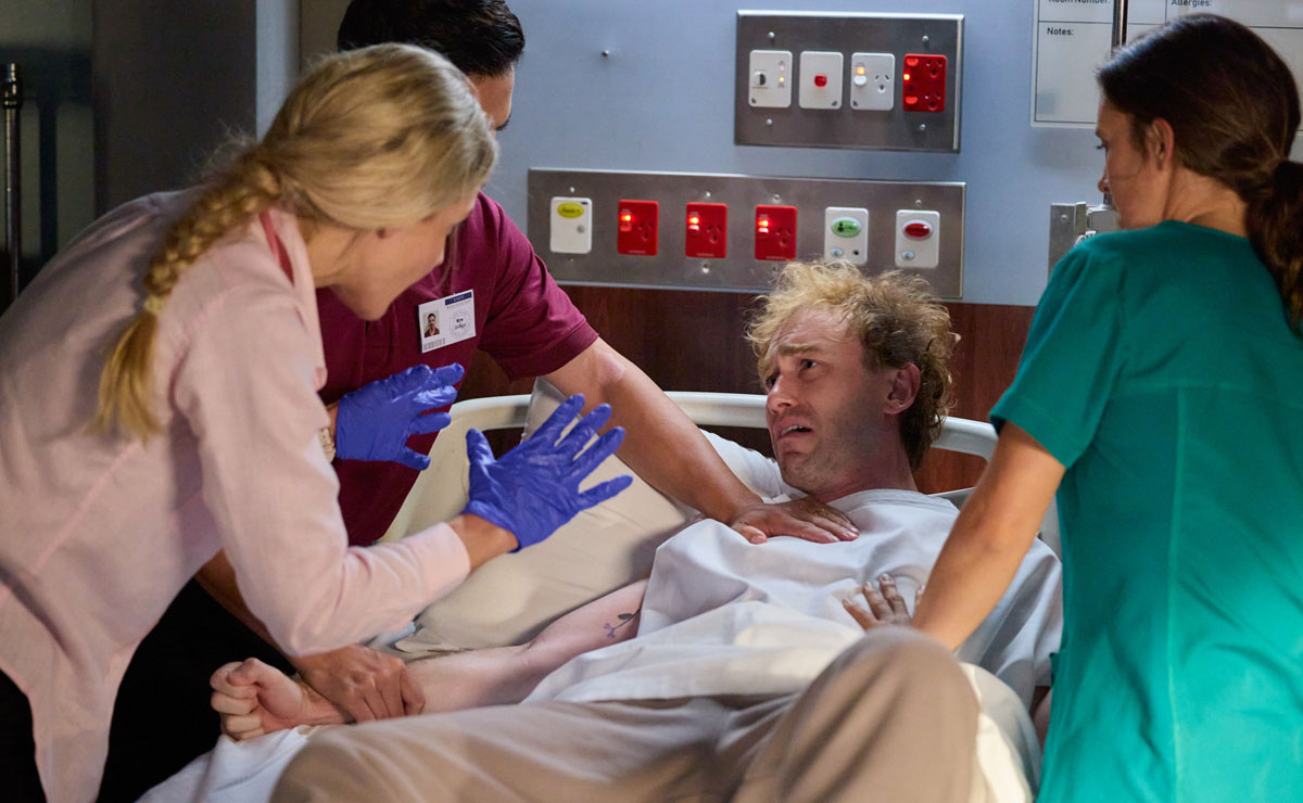 Jo (Maddison Brown) and Levi (Tristan Gorey) raced to save Bree, who had been left with a collapsed lung after it was punctured by the scissors.