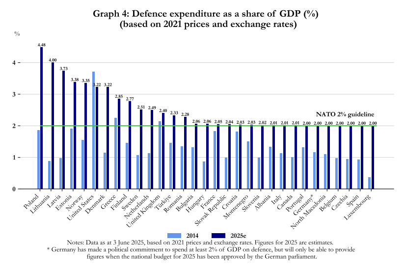 Poland’s defence spending has surged to the highest level in NATO relative to GDP, adding pressure to already stretched public finances.