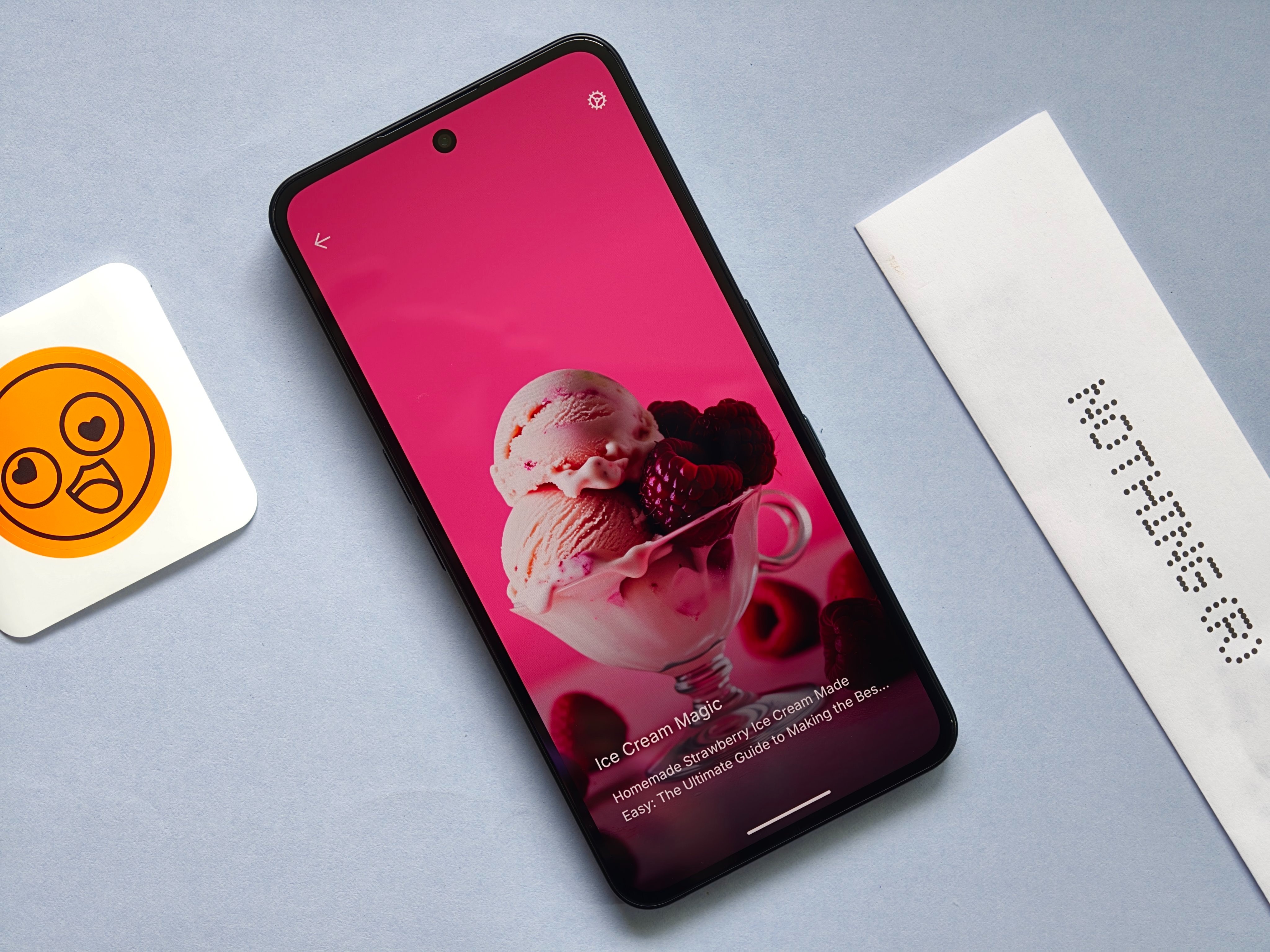 I’m also curious how many of these wallpaper images are AI-generated. At best, they appear to resemble vaguely-related stock images of landscapes, plants, and more, tying into whatever content is linked to the image. But some of them — like a science-fiction landscape — are obviously computer-generated in some way, and it’s unclear if AI’s been involved. Likewise, the strawberry ice cream example used above doesn’t really look like real ice cream, especially once you factor in the use of raspberries, not strawberries, in this imagery.