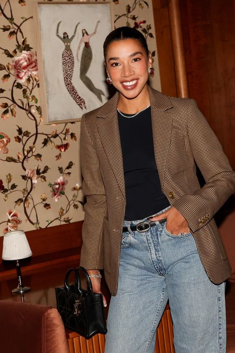 Simone Ashley looked stunning wearing a purple fur coat from Mango’s new party collection at the brand’s Craft Your Own Story dinner.