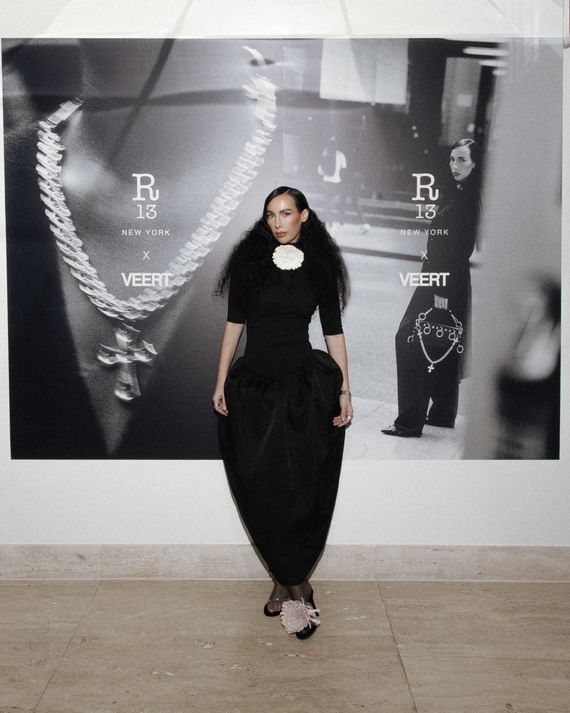 Julia Lang, the founder of Veert, put a little floral twist on an all-black fit for their eventing with R13.