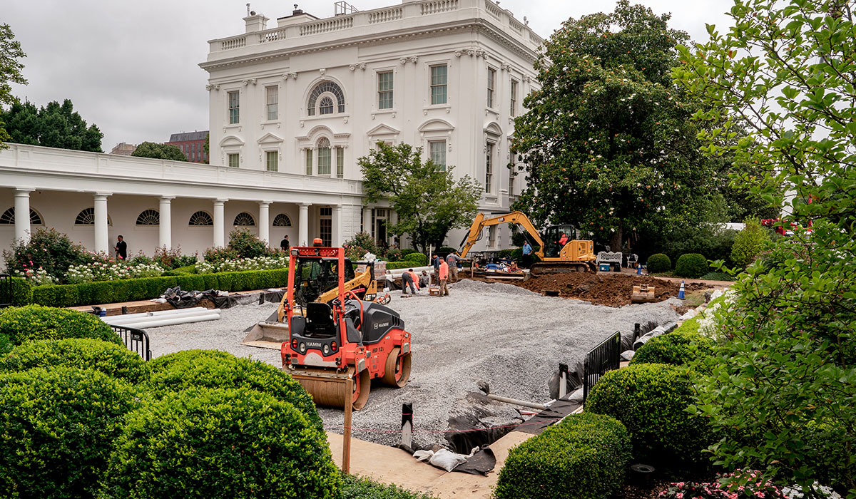 Construction in the Rose Garden of the White House in Washington, DC, US, on Wednesday, June 18, 2025. Photographer: Ken Cedeno/UPI/Bloomberg via Getty Images