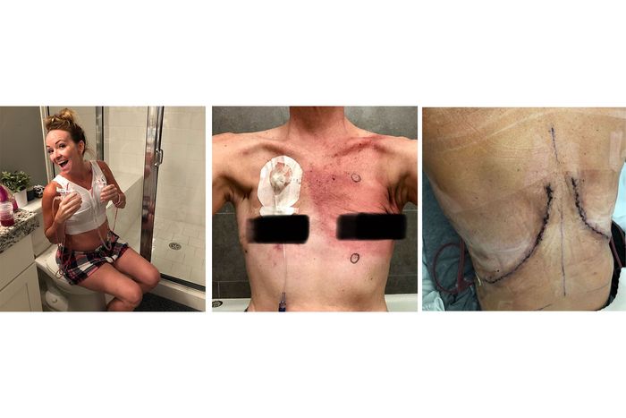 In the weeks just after surgery, everything seemed fine. She’d arranged to take five weeks off work — she was a recruiter at a big staffing agency, a job she’d had and loved for nearly 20 years — and so she watched a lot of reality TV and posted to the private Instagram she used to keep her friends and family updated. In a photo taken a week after her expanders were placed, Williams grins as she poses in a pair of cute boxer shorts and a surgical bra. She holds up two surgical drainage bags filled with blood and pus, smiling. Honestly, she’s kind of pulling the look off. (“All I see is your perfect brows and lashes,” one friend commented.) Her biggest post-op annoyance was her sister and two close friends, who all stayed with her for a week and hovered over her every move.