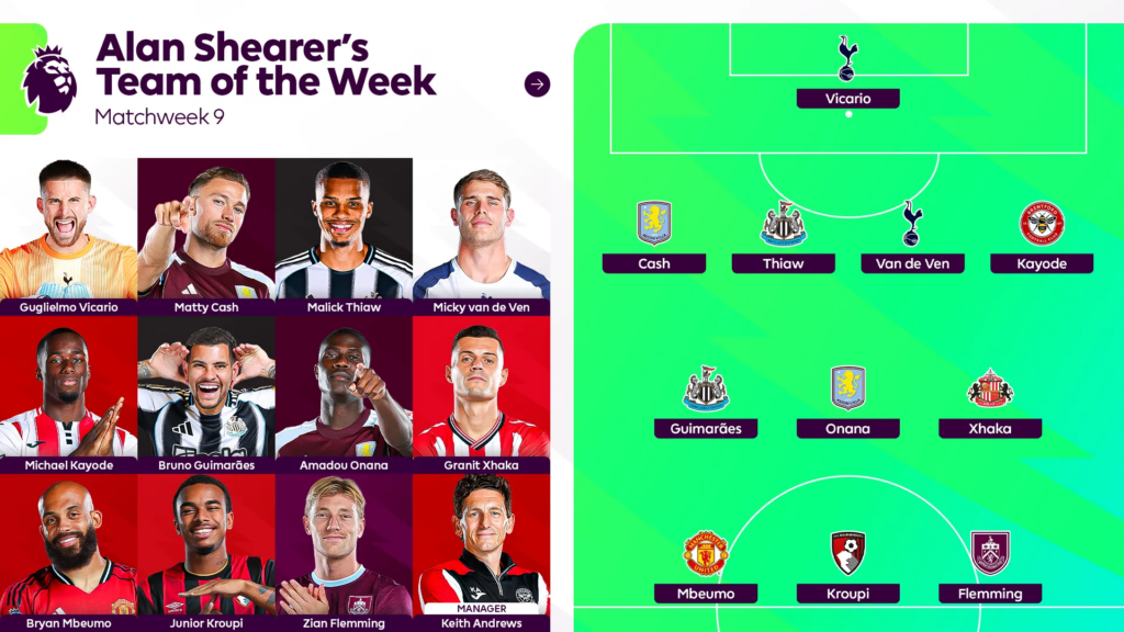 Via the Premier League site, Shearer has named both Matty Cash and Amadou Onana in his Team of the Week, and it will come as no surprise.