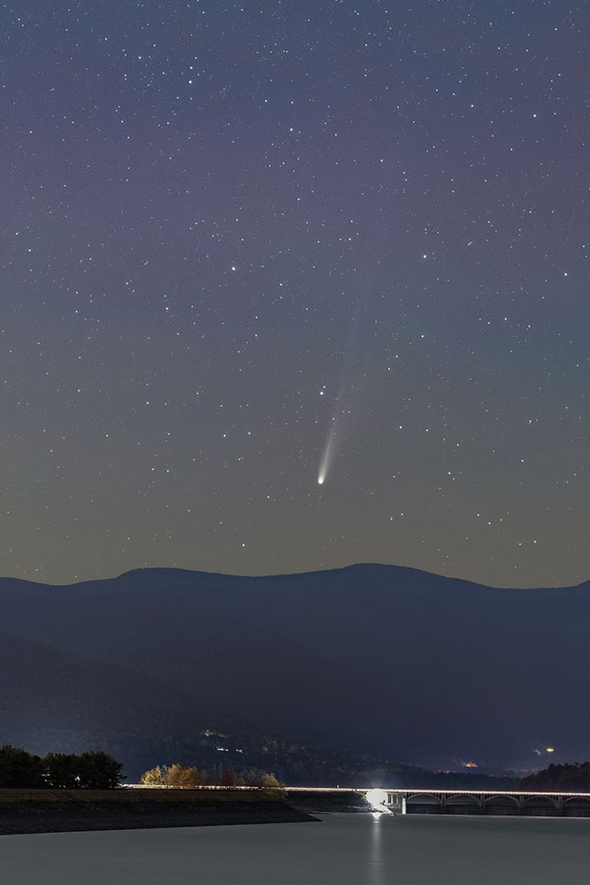 Photographer Dimitrios Katevainis captured the comet in western skies as it passed its closest distance to Earth. “On 23 October the ion tail was quite active, with knots and disconnections,” he writes.