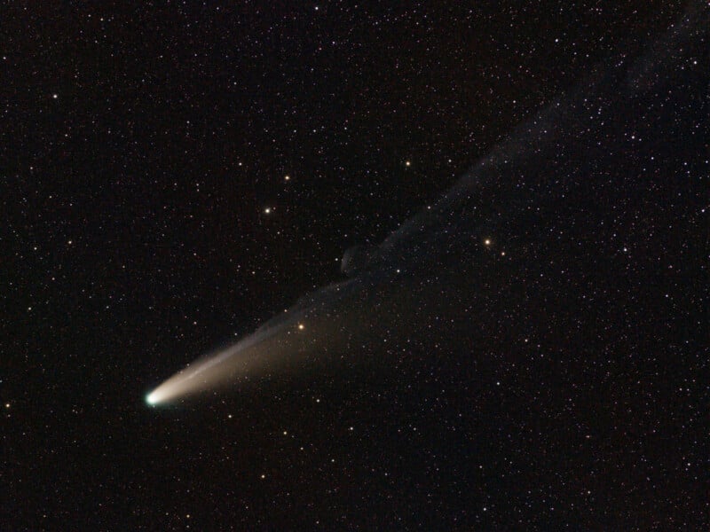Frequent PetaPixel contributor Andrew McCarthy captured what he calls “probably the coolest comet shot I’ve ever gotten.” He says the comet’s trail was “incredibly active and moving quickly.” It made photographing it tough.