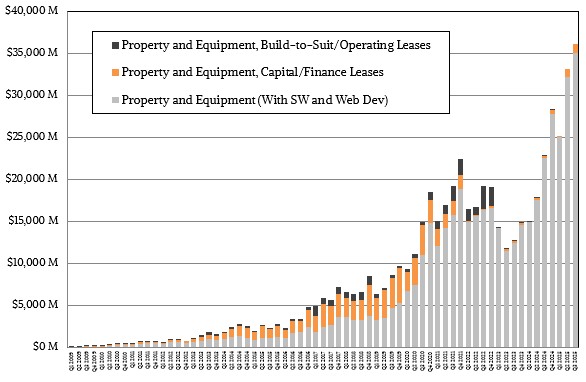 Amazon capital expenses over time, including warehouses, transport, and datacenters.