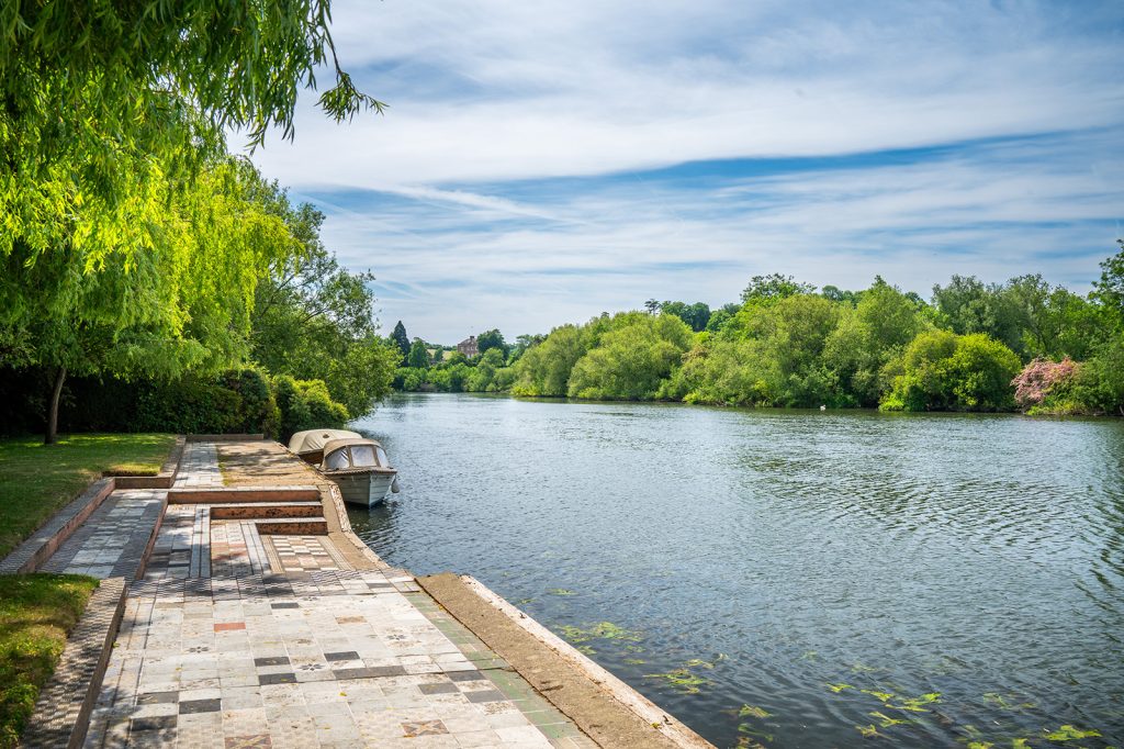 A Corten steel-clad gate house at the main entrance has space for a studio, office and garage with a one-bed guest flat above. From here, a large reflecting pool extends to the main house. And all around are mature private gardens. The lawns reach down to the river, enclosed by box and yew hedging and mature beech, willow, pine, yew, hazel, cedar and walnut trees.