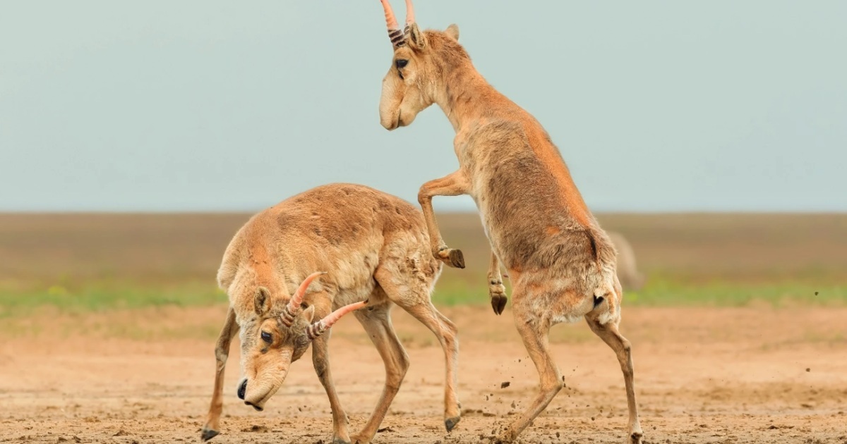 “Saiga fights in spring, outside of the tournament season, are quieter and more about training than determining status,” he shares. “However, the males take every opportunity to practice.”