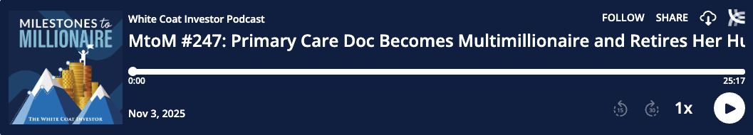 I hope you enjoyed the podcast. If you want to come on it, you can sign up at whitecoatinvestor.com/milestones.