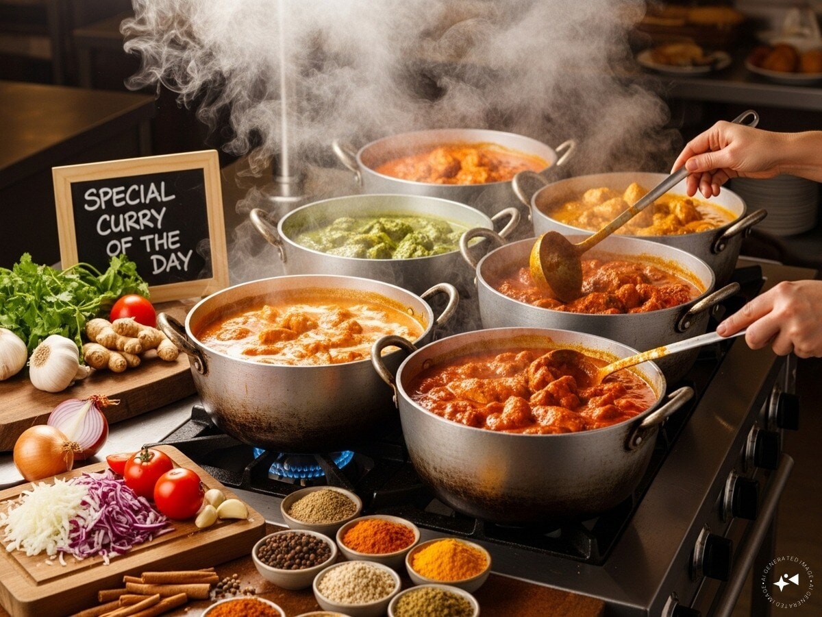 Setting up a curry point requires a modest investment, often less than Rs 50,000. A small rented shop, basic utensils, and a gas connection are enough to begin. With a menu of about 10 dishes, typically six vegetarian and four non-vegetarian curries, daily earnings can reach between Rs 3,000-Rs 4,000. (AI-Generated Image)