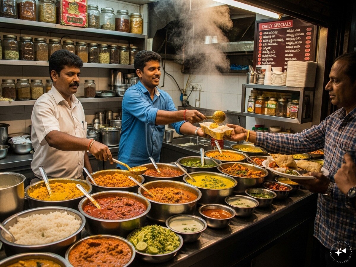 Across metropolitan and tier-II cities, more couples are working full-time jobs, leading to reduced home cooking. With middle-class and affluent families turning to nearby eateries, tiffin services, and online food delivery, the humble curry point, offering home-style curries at pocket-friendly prices, is fast emerging as a dependable source of income for small investors. (AI-Generated Image)