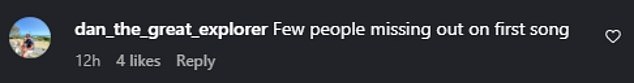‘Few people missing out on [the] first song,’ one person responded in the comments.