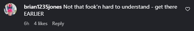 ‘Not that fook’n hard to understand—get there EARLIER,’ one wrote.