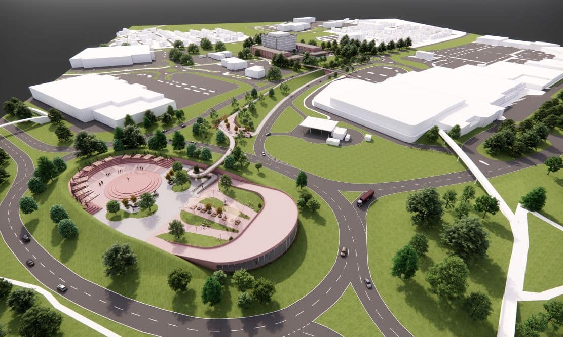 A bird’s eye view of the main roundabout and suggested amphitheatre