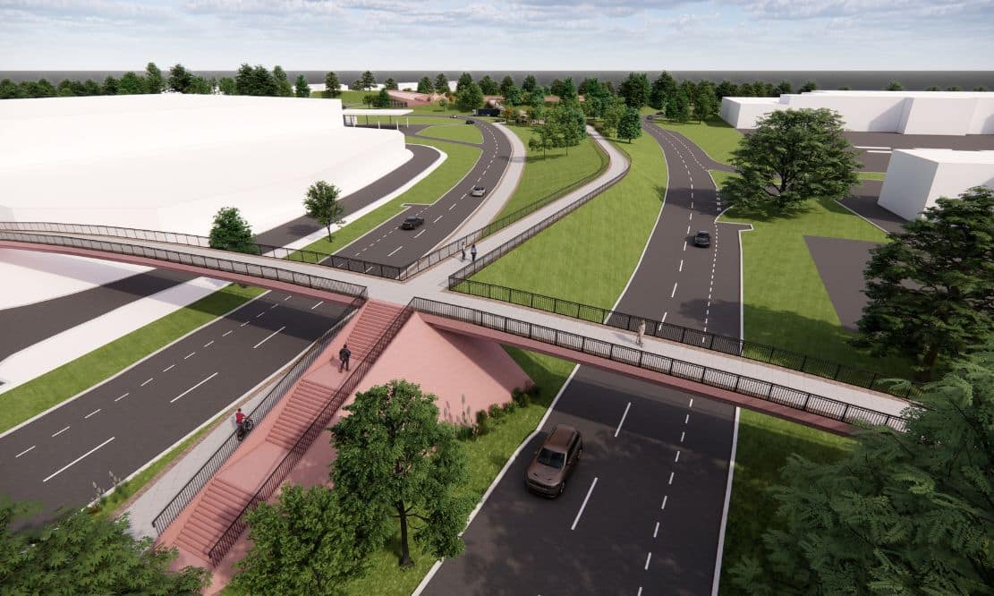“At its centre, the main roundabout is reimagined as a sunken amphitheatre and parkland space, working with the existing landscape, reminiscent of Solitude Park in Banbridge, but on a larger, more integrated scale.