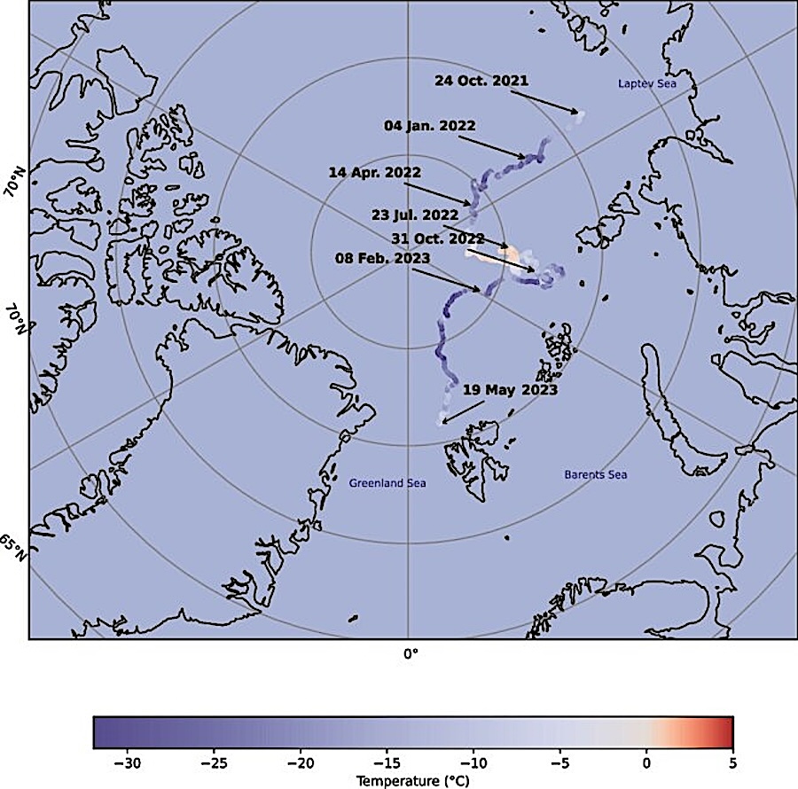 Atmospheric temperature along the floe drift path. Atmospheric temperature from October 2021 to May 2023, along the estimated drift path of the floe sampled in this study. Warm temperatures in summer 2022 and cold yet dynamic temperature variations throughout the ensuing year indicate that by sampling time in May 2023 the top of the sea-ice had experienced more extreme and greater variability in environmental conditions than bottom ice influenced by the relatively stable conditions of underlying seawater (Fig. S1). — ISME via PubMed
