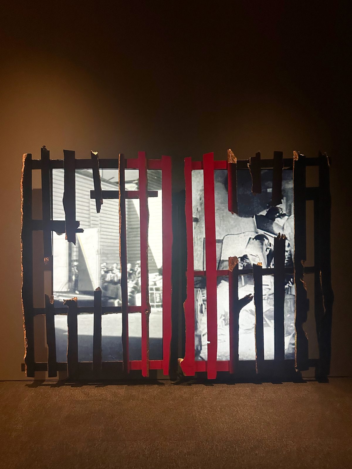 Bruce Yonemoto, “Broken Fences” (2025), monitors, lacquer, wood