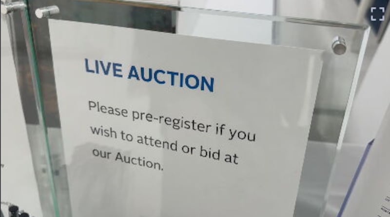 Live auction sign A live auction sign inside Heffel Fine Art Auction House.