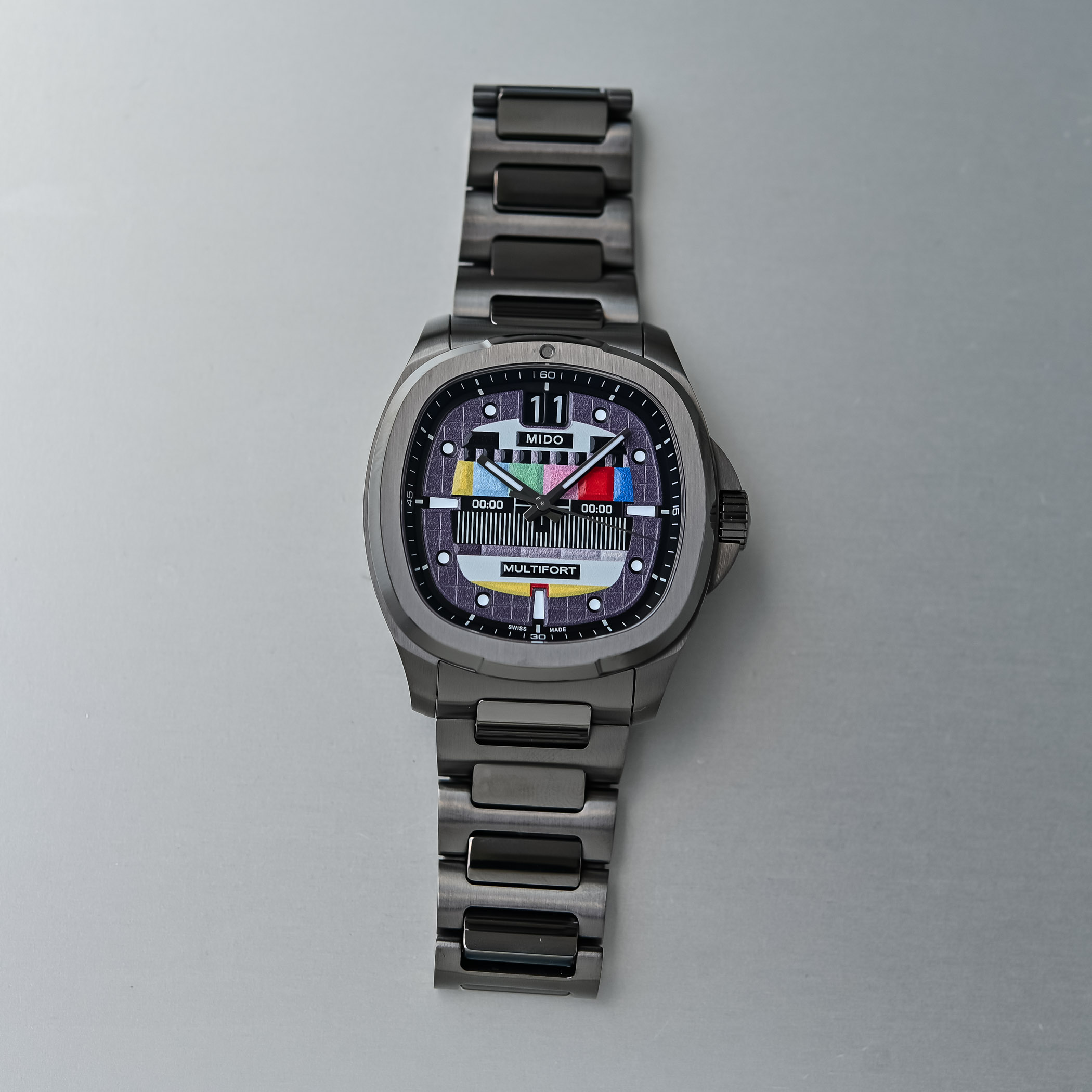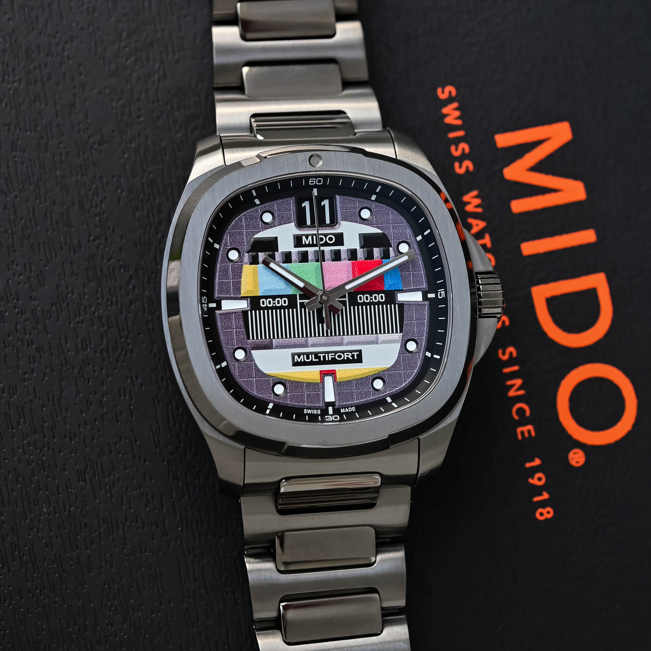 Mido’s TV-shaped Multifort has quietly become one of the most distinctive value propositions in the sports-chic bracket. The core model provided you with the compact square-with-rounded-corners, TV-shaped case, a big date at 12 o’clock, and a modern Powermatic-based calibre, while last year’s S01E01 Test Screen showed how playful the format could be without losing seriousness where it counts. The new Multifort TV Big Date Special Edition S01E02 keeps that momentum. Think of it as season one’s second episode: same solid core, tighter art direction, and a more cohesive, monochrome stage for the colour to pop.