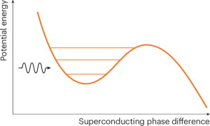 Furthermore, the prize-winners demonstrated that the metastable potential well hosted quantized energy levels (horizontal lines in Fig. 1) associated with different quantum states of the collective phase. They used microwaves (wavy line in Fig. 1) to drive the system from one state to another, which in turn changed the observed quantum tunnelling rate.
