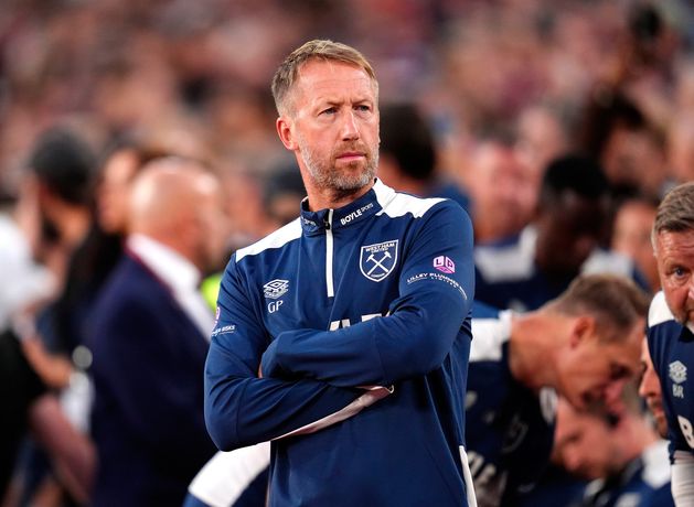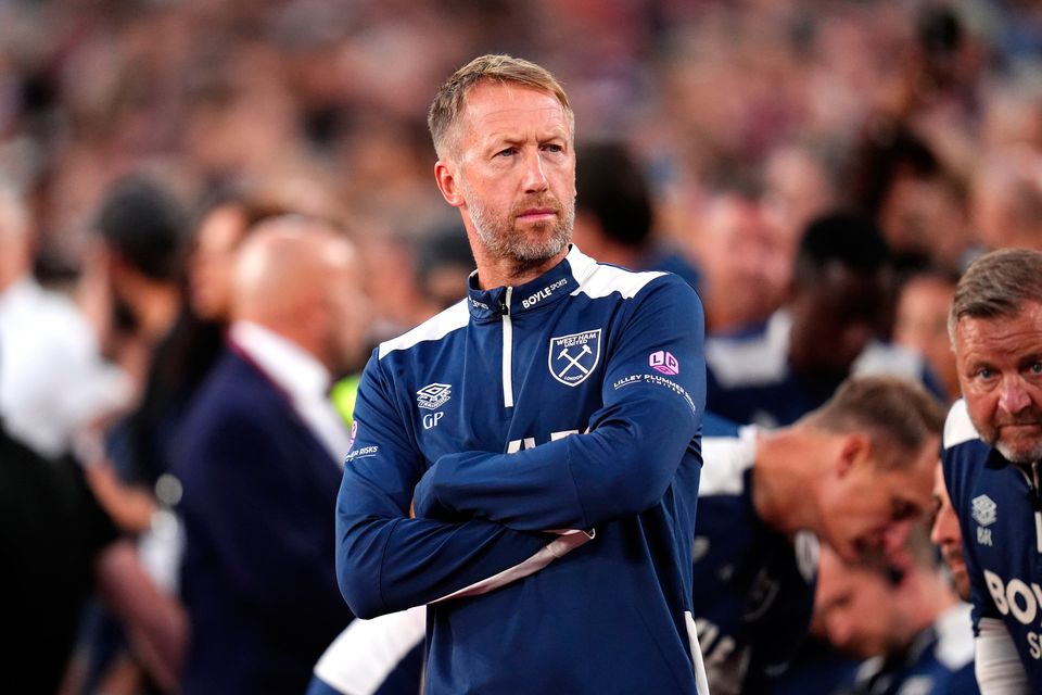 West Ham United manager Graham Potter reacts during the Premier League defeat to Chelsea at London Stadium