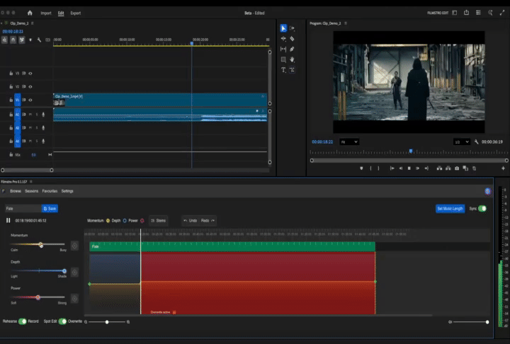 Filmstro’s core technology has centered on giving filmmakers granular control over pre-composed music tracks through three emotional parameters: momentum, depth, and power. The new Premiere Pro Extension moves this adaptive control system from standalone applications into the NLE timeline, where editors can adjust musical intensity in sync with their cutting decisions.