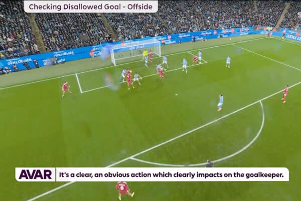 That comes as VAR cannot be used to overturn an objective offside decision, with Robertson in an offside position and – as per an official statement – “making an obvious action directly in front of the goalkeeper.”