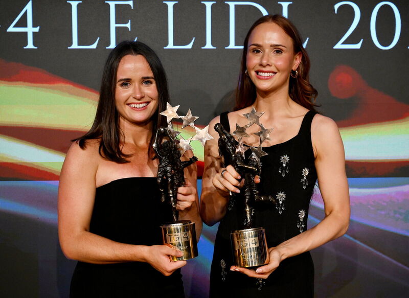 Galway’s Sarah Healy was named in goal in the team of the year while Dervla Higgins picked up her second All-Star award and was joined in the other corner by Shauna Healy, who made a spectacular return to the line-up this year after giving birth.