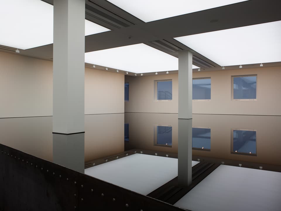 You can smell the big climax before you see it. Richard Wilson’s 20:50 has been presented at every Saatchi Gallery building through the years and at the Duke of York’s HQ is in the very top floor, the monster in the attic whose stench seeps down through the other rooms. Enter the room — half-full with recycled engine oil, shining, still and ominous — to have a near-religious experience, though one where God may appear out of the murk to tick you off.