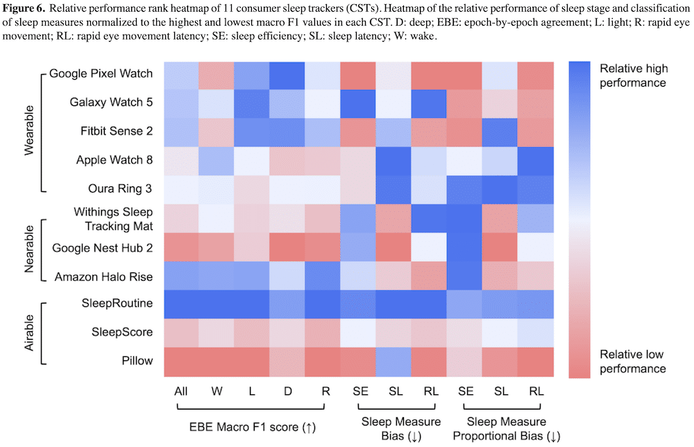 As you might expect from testing so many sleep trackers, along with so many potential variables to study when looking at sleep, the individual variability or quality of each sleep tracker varied widely across the map depending on what you’re looking at. So neither the paper itself nor I are going to claim that “this sleep tracker is the best.”