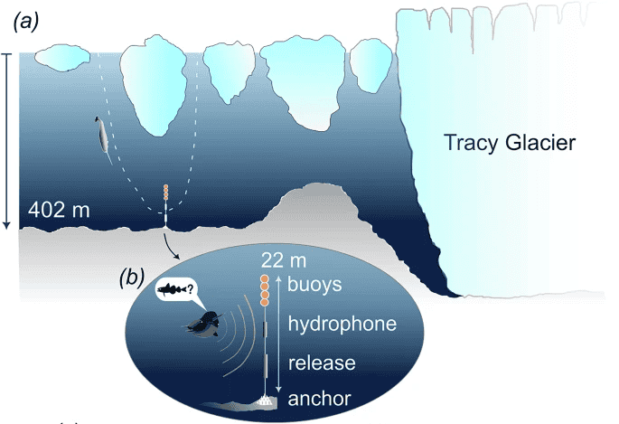 Researchers placed the devices at depths ranging from 190 m to 400 m in the Inglefield Bredning Fjord in northwest Greenland, a critical summering ground for thousands of narwhals.