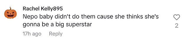 ‘Nepo baby didn’t do them cause she thinks she’s gonna be a big superstar.”