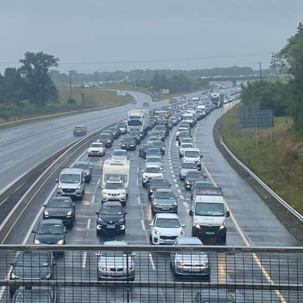 Millennium Park Road is now heavily backed up due to diverted traffic, while routes through Newbridge and Kilcullen are also experiencing significant congestion.