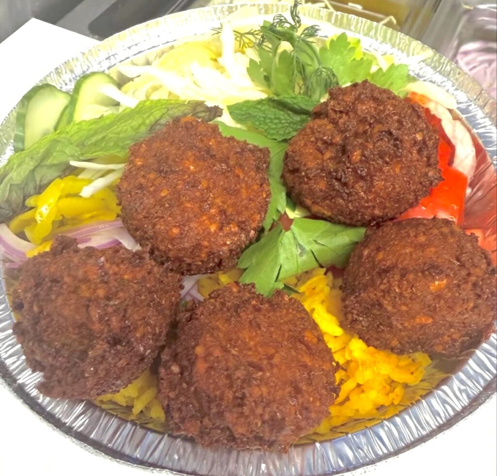 - Falafel Platter: Falafel served over yellow rice with salad, tahina, and house hot sauce